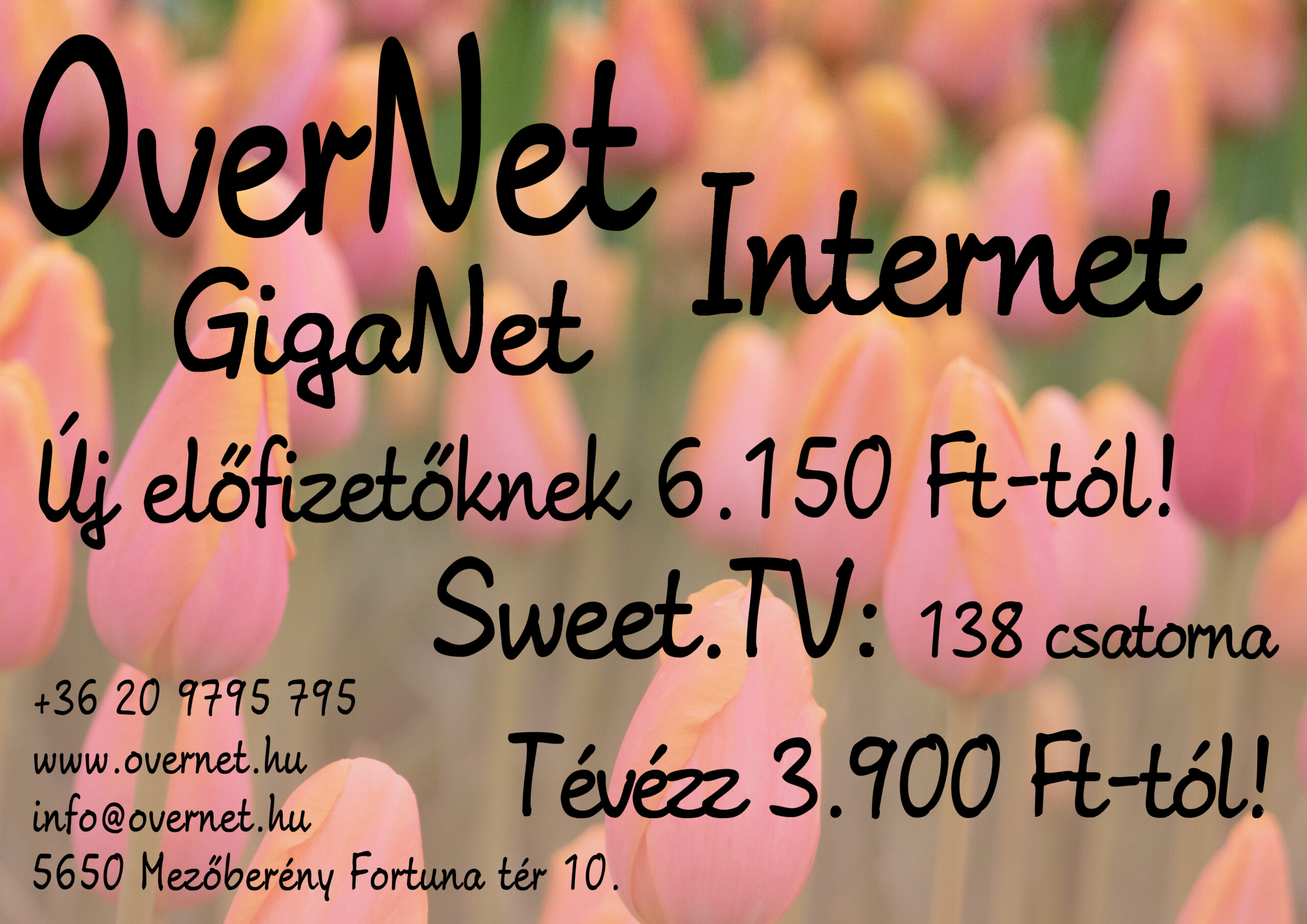 - a Sweet.tv szolgáltatásátamit a Mezőberényi irodánkban ki is próbálhatnak ( 4 eszközön hűségidő nélkül M díjcsomag (138 TV csatorna 3.900 Ft), L díjcsomag (155 TV Csatorna 4.900 Ft), bizonyos csatornákon 7 napig visszanézhető műsorok, Eurosport1 és 2 csatornával